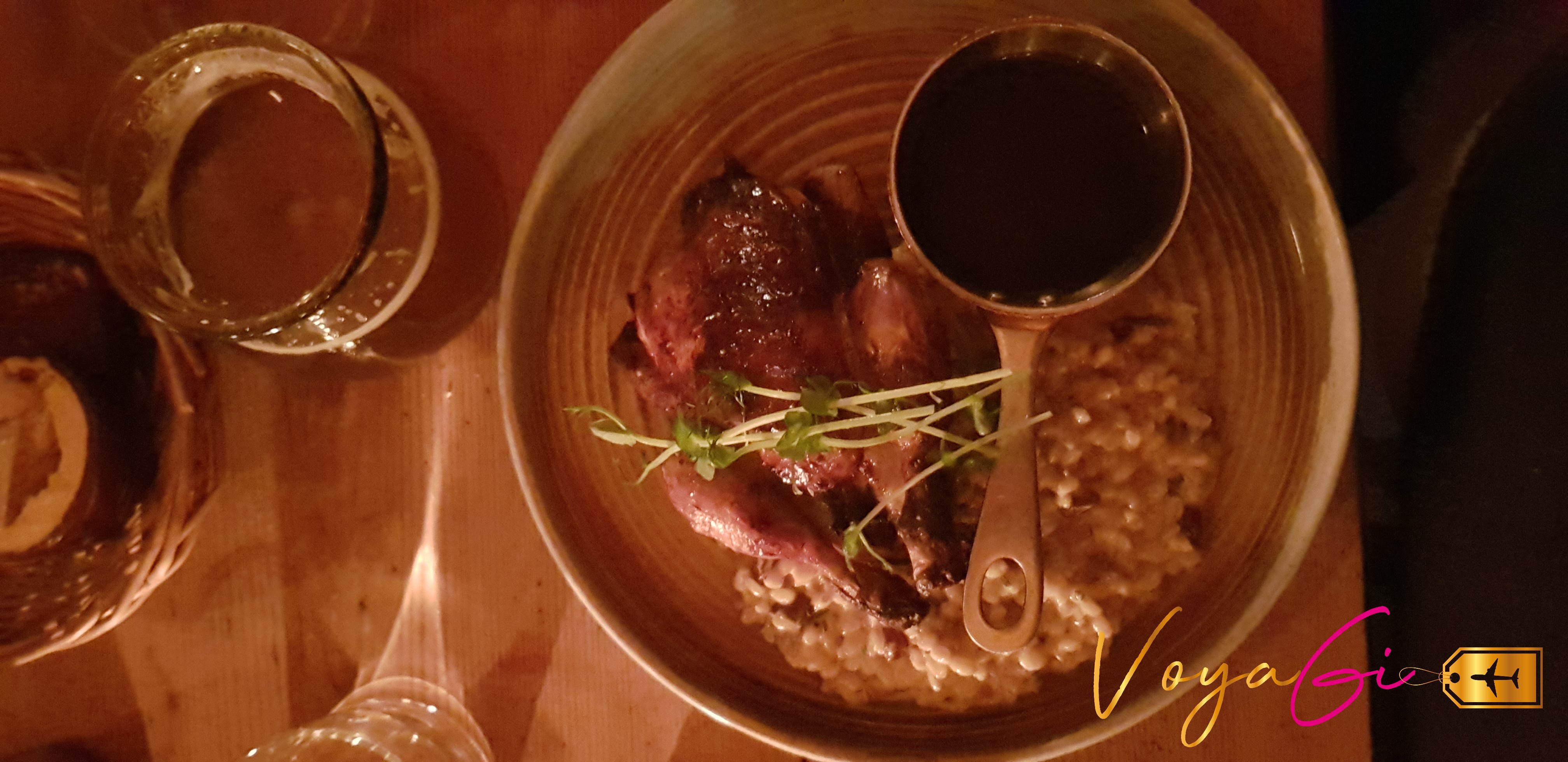 Nessa noite, jantamos em um restaurante super legal, caricato, estilo viking que ficava perto do apartamento, Aifur. O lugar é muito agradável, o restaurante fica no subterrâneo, a comida é boa e quando chegamos fomos anunciados! Como a ideia é se sentir como um viking sugiro não pedir o prato que eu pedi pois os talheres são vikings mas o frango não! hehehe (passei trabalho).
