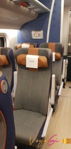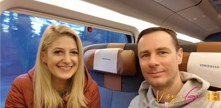 Como estávamos atravessando fronteiras, é normal a presença das policias locais dentro dos vagões para a conferência de documentos. Eu já tinha cruzado fronteira de trem mas deve vez fiquei um tanto apreensiva. Embarcamos no trem, arrumamos nossas malas de viagem em nosso vagão e tratamos de nos acomodar nos assentos. Nos assentos tinham tomadas para carregar os celulares, mesinha para comida ou lap top, porta bebidas/copos, porta casaco e, acima da cabeça, como nos aviões, os maleiros para bagagem de mão.