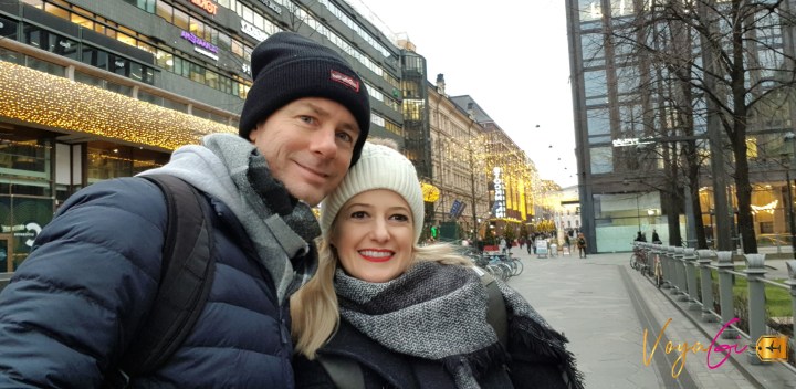 Dia 2 – Helsinque. Renovados para adquirir novos conhecimentos, embarcamos no transporte público rumo ao centro da cidade. Compramos o cartão de transporte público para 7 dias. Perto da nossa hospedagem, havia 2 pontos de tram. Saímos pela manhã e a primeira parada foi na Kamppi Chapel ou Capela do Silencio (entrada gratuita), a qual fica no centro da cidade, próximo a estação central de Helsinque. Desde de manhã a cidade estava toda brilhante com a iluminação de Natal! Passamos pelo Ateneum, a galeria de arte mais antiga da Finlândia. Seguindo o roteiro do dia, fomos a umas das praças principais, a praça do Senado, ladeada por quatro edificações com obras-primas de Carl Ludvig Engel (1778-1840): Catedral de Helsinque, Palácio do Governo, o edifício principal da Universidade de Helsinque e a Biblioteca Nacional da Finlândia. Nessa praça fica a maior feira de Natal de Helsinque, mas infelizmente não estava aberta na época que eu fui, estavam montando. Almoçamos uma pizza de carne de rena deliciosa no restaurante Vapiano. No restante do dia, nos distraímos dentro da galeria Stockmann. Em frente à galeria, fica a estátua dos três ferreiros. Para finalizar o dia fomos até o Ateljee Bar que fica no roof top do Hotel Solo Sokos Hotel Torni. Com certeza a melhor vista de Helsinque.