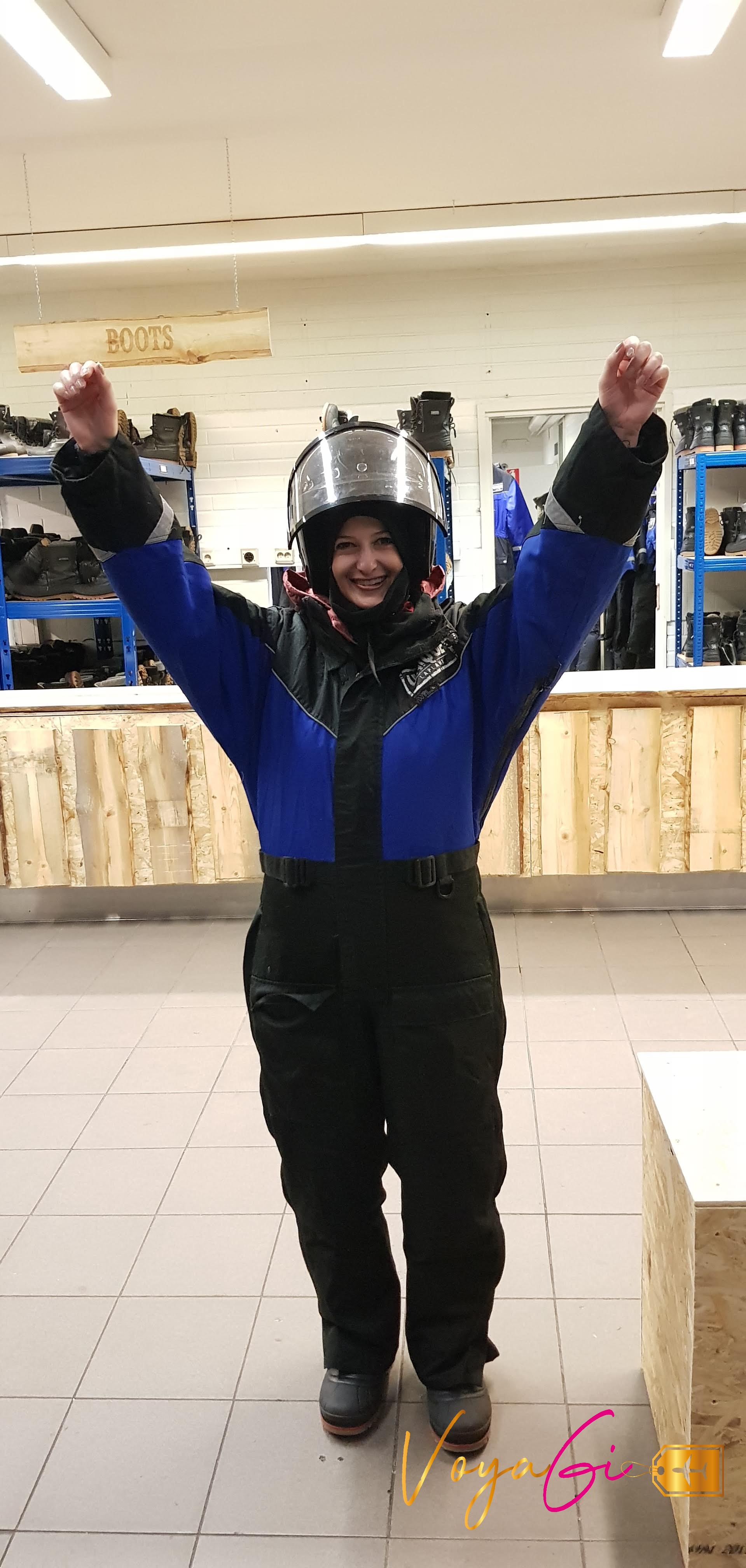 Dia 2 – Rovaniemi. Acordamos com neve nas janelas do quarto. Um cenário cinematográfico. Pela manhã fomos fazer um passeio com a Wild Nordic Finland. Escolhemos o Snow Fun Day Combo para o dia do meu aniversário. Caminhamos até a sede da empresa na Vila do Papai Noel, encontramos nosso instrutor, pegamos as roupas especiais de neve e, após as explicações do instrutor de como funciona o snowmobile, partimos em direção à floresta. Eu dirigi a moto neve pela primeira vez. Fizemos um safári com a moto neve e a primeira parada foi na fazenda de renas. Encontramos a proprietária da fazenda que nos levou até uma cabana típica. Na cabana, havia uma fogueira, biscoitos, bebida quente típica e um vídeo sobre a vida da renas. Foi excelente saber que elas não gostam que toquem em seus cifres. Andamos no trenó puxados pelas renas e retornamos ao safári até a sede da empresa. Ganhamos lá nossa carta de habilitação para conduzir treno de renas! Não é demais? De lá, fomos caminhando até a fazenda dos huskies. Confesso que não curti o passeio no trenó dos cachorrinhos. À tarde foi todinha para passear pela vila do Papai Noel. Encontramos com o dono do pedaço e ele cantou parabéns para mim!!!! Muita felicidade para um dia só. À noite era de festa, então não poderia ser diferente. Festejamos com pizza, vinho e tradição finlandesa. Fizemos um avanto modificado! hahaha Sim, eu tenho provas que eu fiz sauna e depois me joguei na neve! Foi muito legal porque é frio, mas ao mesmo tempo você não sente tanto frio, pois o processo de sair da sauna e se jogar na neve é super rápido.
