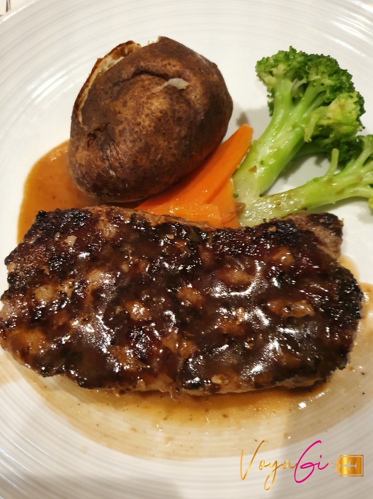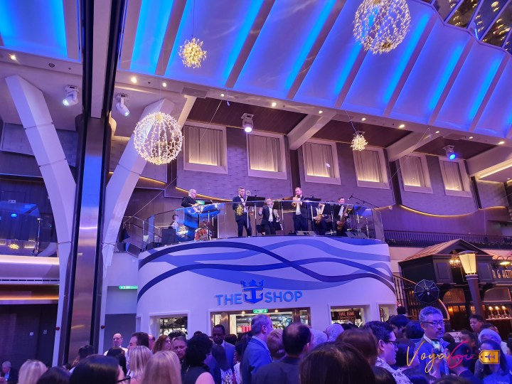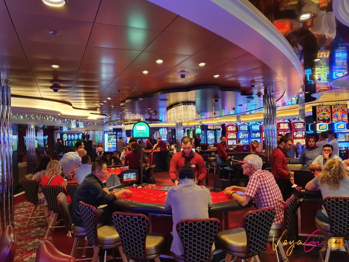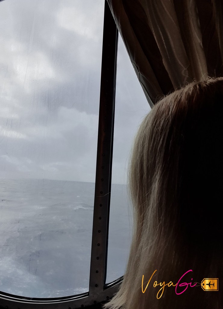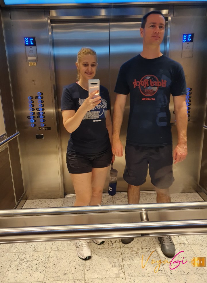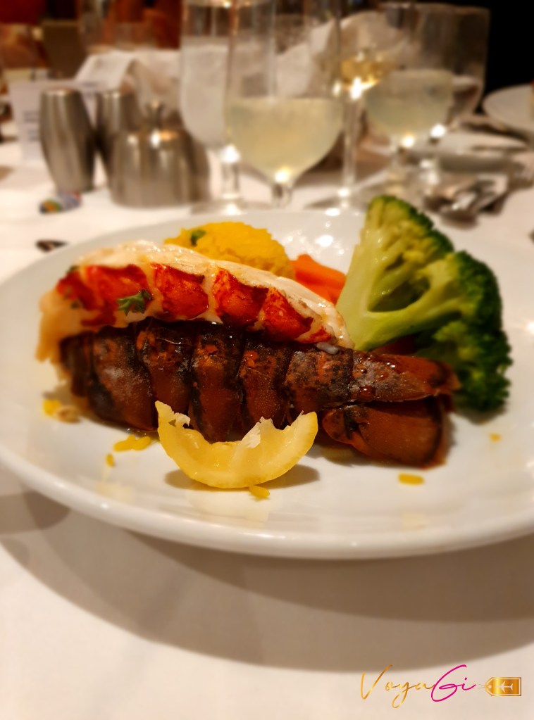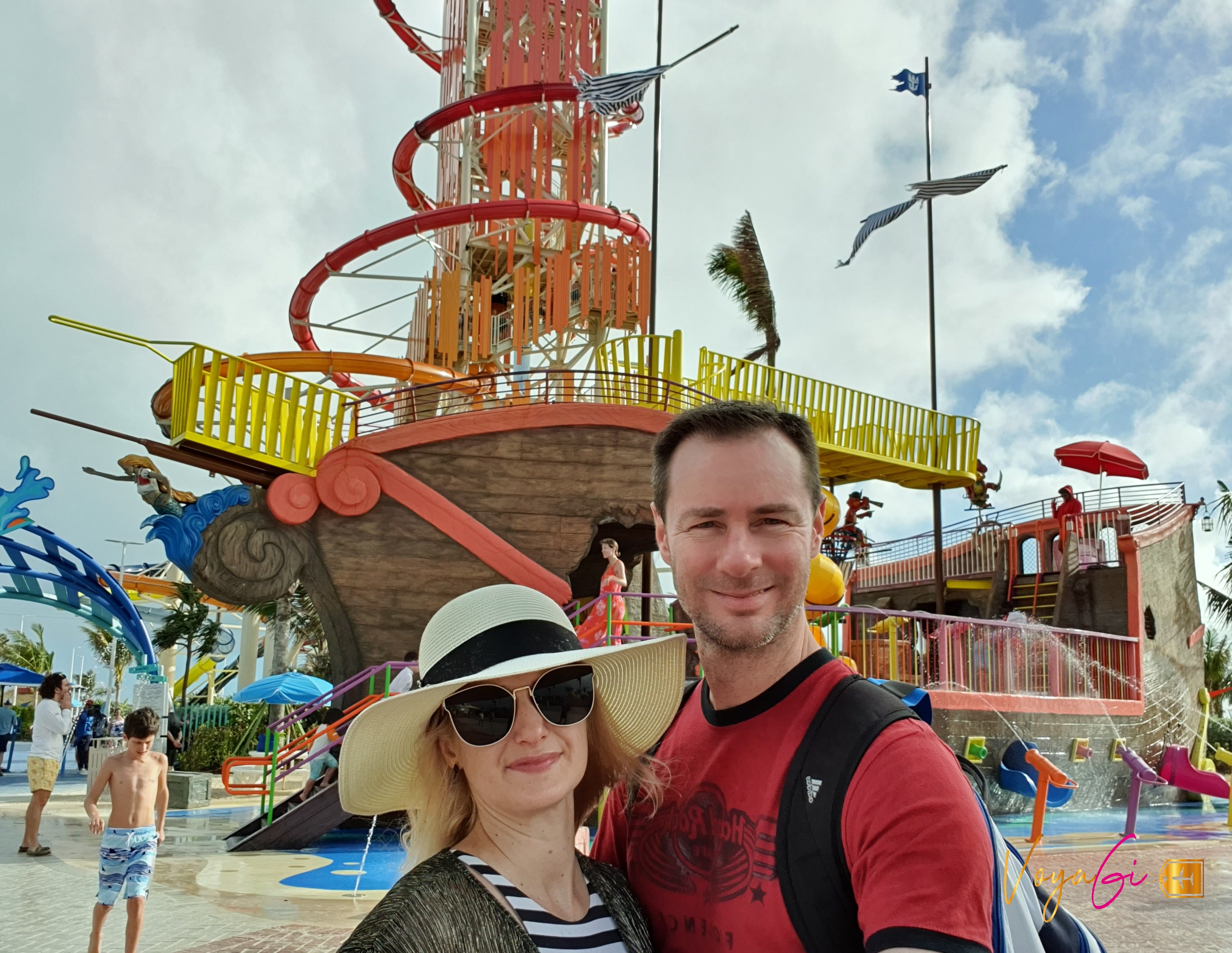 Dia 2 – Dia de navegação. Dia de aproveitar as atrações do navio. Acordamos com calma e fomos tomar café no deck 3. A fartura de comida era tanta que era muito difícil escolher só um prato para comer. Não dá para dizer que se passa fome no navio. Saímos animados e preparados para ir à academia. Sim. Acreditem nós fomos treinar dentro do navio e foi muito legal. A academia era toda equipada com os aparelhos mais modernos, toalhas para higiene pessoal e muitas esteiras com vista para o mar. Uma pequena área para a pratica de yoga e alongamento. Em outra área, tinham palestras com instrutores para os treinos. Estava lotada de pessoas a hora que fomos. Antes de iniciar nosso treino, fomos aquecer na pista de corrida do navio. Uma voltinha muito agradável pelo convés de aproximadamente 500 metros. E, é claro, com vista para o oceano. Estávamos sentindo muito falta de ir a academia. Próxima à academia, fica a área do Vitaly Spa com muitos serviços à disposição e também um salão de beleza. Satisfeitos com o treino, escolhemos novamente o salão principal do deck 3 para o almoço. Era super perto da nossa cabine e sempre tinham muitas opções de pratos. A minha parte favorita era o buffet de salada. Pasmem! O buffet ficava bem no centro do salão e tinham 2 pessoas que montavam a salada pra você. Funcionava assim: você escolhia os vegetais que queria comer e tudo era acomodado em um bowl, você podia acrescentar os molhos e sementes e um colaborador misturava tudo. Eu saia toda contente com o meu bowl até a mesa hahaha Ficava uma salada linda e saborosa. Na parte da tarde partimos para a área das piscinas para relaxar. Fomos relaxar #sqn! A primeira coisa que fizemos foi entrar na fila do trio de toboáguas, The Perfect Storm, que se entrelaçam e ficam no topo do navio. Essas coisas não são só para crianças! Na fila tinham vários adultos. O toboágua era muito legal! Vale esperar na fila. Dali partimos para uma área mais adulta. Ficamos boa parte da atarde na Jacuzzi aquecida na lateral do navio com a vista do horizonte mais linda que já vi. Realmente é uma experiencia que só o navio pode oferecer. Depois da calmaria, decidimos ir até a área de aventuras e, no caminho, paramos para pegar um sorvete na máquina. Sim, você podia pegar sorvete à vontade na máquina. Era só aguardar na fila escolher casquinha, copinho, o sabor e se servir. Passamos diversas vezes por ali. Meu marido adora sorvete, ainda mais free haha! Seguindo para a área de aventuras nesse local tinha: mini golf, tirolesa com altura de 9 decks e 25 m de distância, 2 simuladores de surf Flowrider e o maior e mais alto tobogã dos mares, o Ultimate Abyss. Fica a 47,5 metros de altura da superfície do mar. Tem uma queda de 30 metros, que é percorrida em 13 segundos. Seu circuito possui uma espiral de 450° e duas voltas de 360°. Espetacular! Na saída, encontramos meu irmão, cunhada e sobrinho no Flowrider e decidimos arriscar no surf. Foi preciso fazer inscrição para essa atração e assinar um termo de responsabilidade. Crianças precisavam de autorização dos pais. Da arquibancada, assistimos meu irmão e meu sobrinho surfar e também outras pessoas não tão habilidosas. Parecia tudo muito fácil até chegar a minha vez. Alguém aí já foi nesse simulador? A primeira tentativa a gente vai deitadinho em um tipo de prancha até a metade do simulador, conforme a orientação do instrutor. Se você conseguiu, OK. Segue para a segunda fase. Você fica em pé, claro que no meu caso com a ajuda do instrutor, em uma prancha um pouco maior. Juro que não sei até agora como consegui ficar em pé naquela prancha. A força do simulador é tão grande que eu estava com uma camiseta de manga longa, dessas com proteção solar, e quando eu caí consegui ralar todo o meu braço. Como isso aconteceu, ninguém sabe! Só sei que rimos bastante dos meus tombos. Sou dessas que tem que testar para poder dar opinião. Para a minha primeira vez, até que fui bem! hahaha Saindo dessa área, tentamos ir no Ultimate Abyss e na tirolesa, porém para ambas as atrações não podíamos estar molhados e tínhamos que estar calçados. Ficou para o outro dia. Tomamos café na Royal Promenade, encontramos lá o restante da família e, depois de um dia de muitas atrações, descansamos no quarto antes da famosa noite do Capitão. Não sei vocês, mas eu sempre ouvia falar dessa noite e achava que seria incrível jantar com o capitão. Na verdade é uma noite de gala. Todos muito arrumamos, mulheres de longo, homens de terno desfilando formosos pelo saguão principal. Nada contra haha! Fomos recepcionados na Royal Promenade com taças de espumantes. Entramos na fila para tirar foto o capitão. E esse foi o tão falado encontro. No jantar, o cardápio era especial, mas o capitão mesmo foi só para foto. Depois, corremos até o Aqua Theatre, um teatro a céu aberto em que atletas olímpicos fazem diversas acrobacias, para assistir o Show Hiro. Para essa e outras atrações temos que agendar horário pelo aplicativo do navio. A apresentação foi fantástica, apesar que eu quase ter dormido sentada de tão cansada.