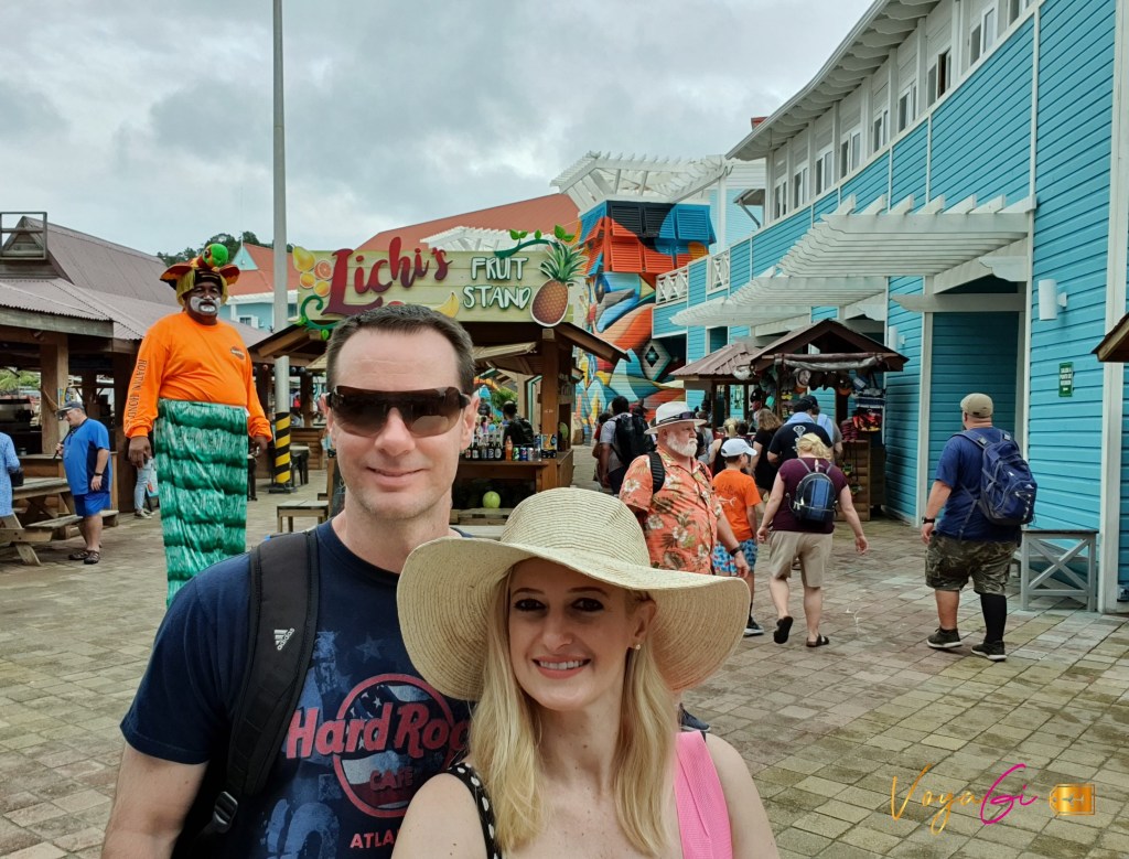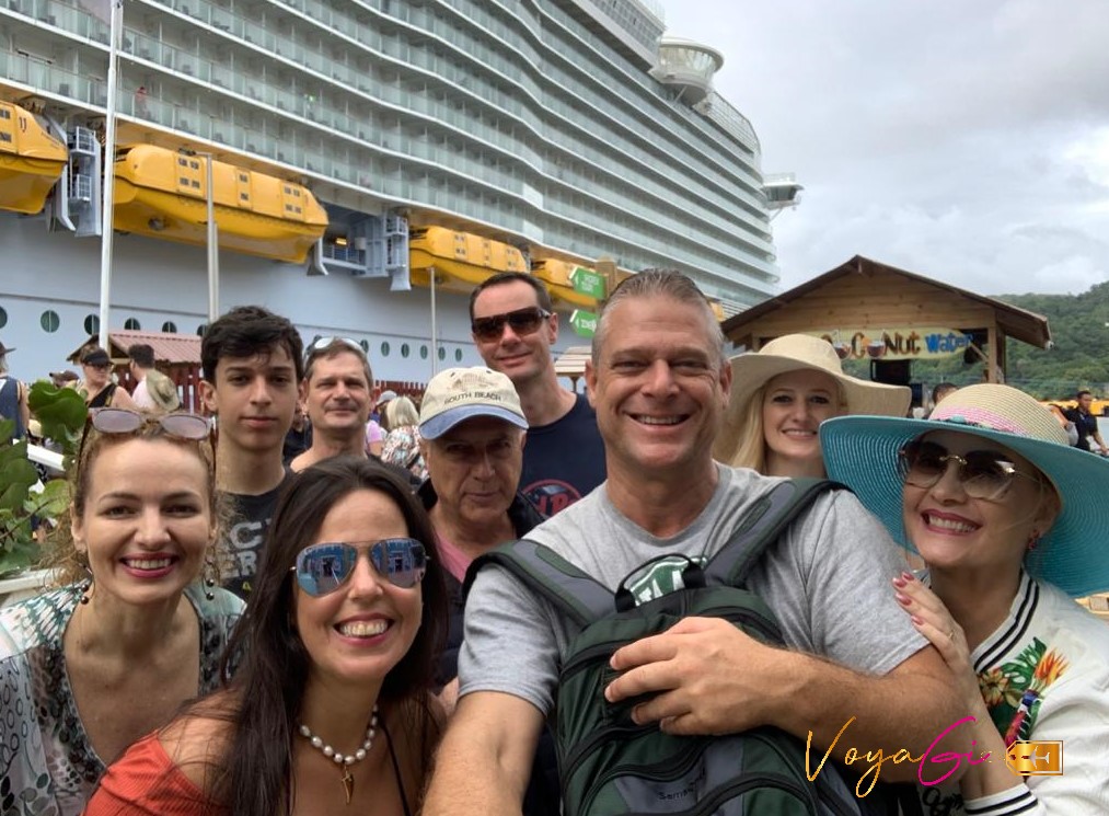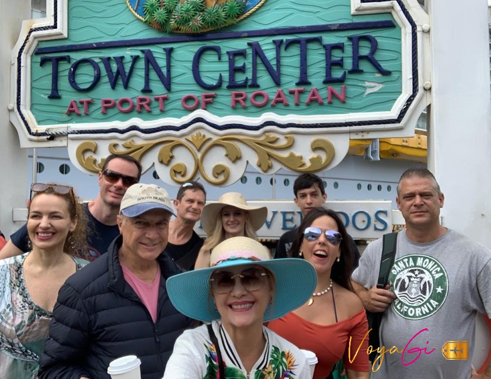 Dia 3 – Parada em Roatan, Honduras. Acordei toda dolorida! Imagina uma pessoa que quis fazer todas as atrações em um único dia. Só podia estar toda quebrada hahaha! Encontramos papis soberano na café da manhã no deck 3 e já combinamos o horário de encontro para o desembarque do primeiro dia: Roatan, Honduras. Só tinha visto esse nome no atlas do colégio. Nunca passou pela minha cabeça visitar um destino como esse. Não é por preconceito meu. Eu realmente não curto muito destino com praias. Mas, eu estava seguindo o passeio da família, então fomos conhecer Roatan, uma ilha com grande beleza natural: a segunda maior barreira de corais do mundo. Descemos todos felizes e faceiros com a primeira parada numa ilha desconhecida. Pegamos nossas toalhas de praia na saída do navio e partimos para a aventura em Roatan. Caminhamos brevemente pelo pier, tiramos “trocentas” fotos e chegamos ao porto de Roatan. Um lugar bem pequeno com alguma estrutura turística. Dali, já pudemos ver a beleza do mar da ilha. Ainda no porto, de certa maneira, organizado, tinham lojas, bares e um caminho que você literalmente cai nos quiosques de agências e receptivos da ilha. Todos te empurrando um passeio com day use. Um pouco mais a frente, já na parte do externa do porto, encontramos muitos taxistas e motoristas novamente empurrando corridas até as praias (eles tem que ficar do lado de fora do porto). Fechamos com um motorista desses que cobrou por pessoa para nos levar e buscar até uma praia, que era, segundo o vendedor, a melhor do local. Entramos todos na van e junto entrou uma criança de uns 12 anos que falava espanhol e teoricamente seria o nosso guia. Ele era filho do motorista que nos levou e sobrinho da pessoa que vendeu o passeio. Ali começou o nosso pesadelo! O veículo não era aquela maravilha e, ainda por cima, começou a chover. A paisagem que víamos ao passar pela cidade não era nada agradável. Vimos logo de cara um lixão à beira da estrada e casas entulhadas uma em cima da outra. Fomos levados até o alto de um morro sem estrutura nenhuma com uma estrada horrível que era para ser um mirante. Como chovia ninguém quis descer. Nem sei como aquele carro subiu pois os pneus patinavam na lama acumulada na estrada. Ainda animados, voltamos ao caminho em direção à praia, quando nos deparamos com uma fila de veículos. Ficamos parados escutando as informações dos nossos anfitriões até que vimos muitos carros fazendo o retorno. Pudemos ver que havia um morro desbarrancando logo a nossa frente. O motorista fez o retorno e começou a se comunicar com os outros motoristas e também com algumas pessoas por telefone. Não tínhamos como passar para ir até as praias ou pelo menos foi o que ele nos informou. Ficamos rodando mais um pouco dentro do carro, perplexos com o caos da cidade e pedimos para retornar ao porto. Até agora, não sabemos se foi tudo verdade, mas eu acredito que fomos enganados. Pode ter sito falta de sorte a chuva forte daquele dia. Mas, para mim foi golpe! Fica a dica. Ficamos num pouco mais na estrutura do porto e logo retornamos ao navio. Depois, fomos jantar com todos e comentar sobre o que aconteceu naquela ilha! Foi praticamente um dia perdido, teria sido muito melhor passar o dia dentro do navio curtindo toda a estrutura. Mas viagem é viagem!!
