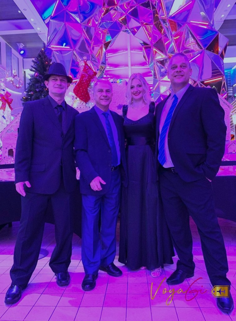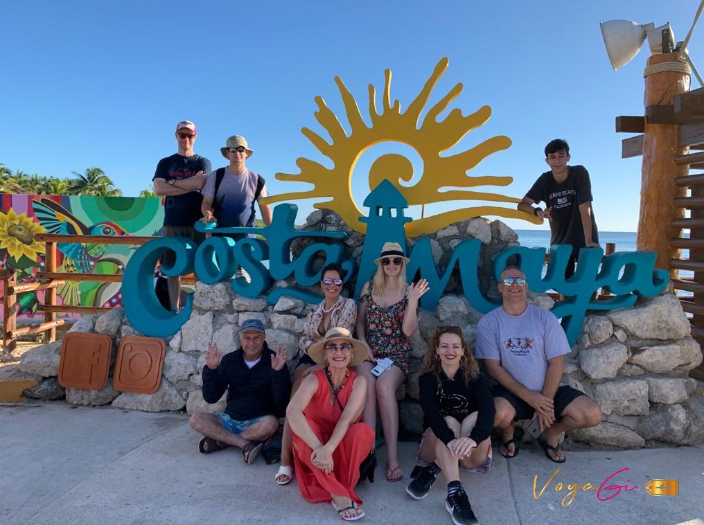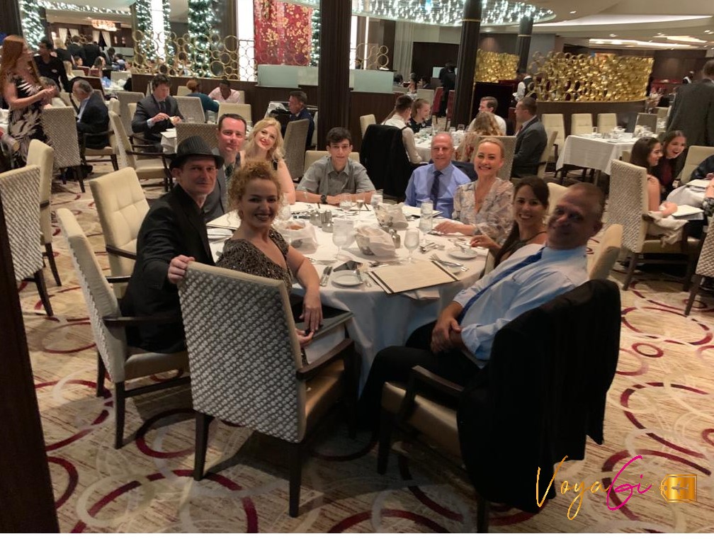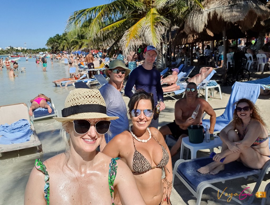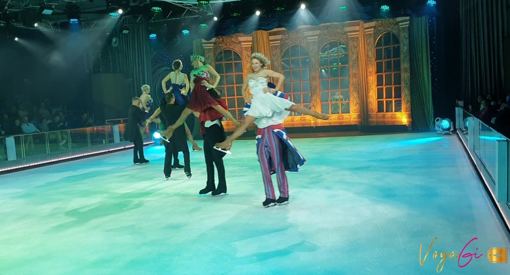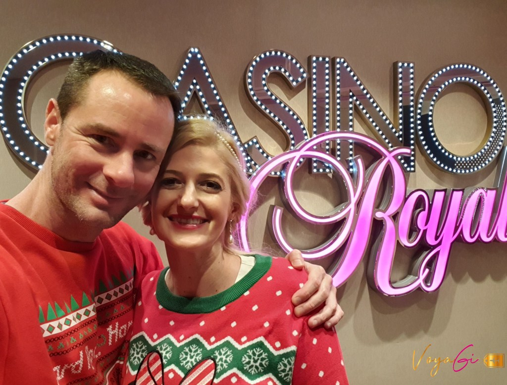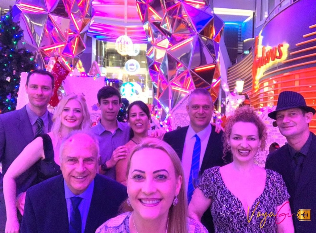 Dia 4 – Parada em Puerto Costa Maya, México. Traumatizados com o dia anterior, todos estavam desgostosos com o que estava por vir. Do navio, já dava para ver que o porto da cidade tinha uma estrutura muito melhor do que a do dia anterior. Era como se fosse um Beach Club. Havia golfinhos, lojas, restaurantes, bares, atrações locais, flamingos, piscinas tudo ali no porto mesmo. Dava para passar o dia todo ali mesmo mas a intenção era pelo menos ver o mar do Caribe! Na saída do porto, pegamos um trenzinho para ir até a praia. Percorremos uma distância razoável, aproximadamente 10 minutos, até Mahahual Beach uma praia pública. A ideia era conhecer a praia. Apesar de tudo eu estava ansiosa para ver de pertinho o mar do Caribe tão enaltecido por turistas do mundo todo. Já tinha até música falando disso na minha playlist hahaha! Nem bem desembarcamos do trenzinho, já fomos abordados por pessoas que nos levaram à praia. Mais tarde, compreendemos que eram os funcionários dos restaurantes que ficavam ali para aliciar os clientes. Ficamos logo no início da praia. Como era cedo, escolhemos um local com cadeiras literalmente dentro d’água. Na orla da praia, havia um calçadão com muitos restaurante e lojinhas. Foi então que percebemos que fomos novamente enganados pelo pessoal do restaurante, já que nos cobraram por cadeira para ficar ali. Mas enfim… passeamos pelo calçadão, tiramos fotos e ficamos por ali boa parte do dia. A praia era realmente linda, águas com temperatura amena, tranquilas e cristalinas. Era véspera de natal e consegui fazer chamada de vídeo para os sogros à beira-mar graças ao chip internacional que comprei (para saber mais do chip internacional pré-pago, clique aqui). O que me deixou realmente #chateada foi a abordagem do pessoal. Como eu disse, quando chegamos, já fomos abordados e levados para as cadeiras e mesas na areia da praia, tudo “perfeito” segundo a descrição dos nossos aliciadores: cobraram por cabeça e podíamos ficar ali o dia todo, com internet e banheiro do restaurante. Só que a internet mal conectava e o banheiro era um lugar muito ruim com uma ducha parecendo um balde. Era para termos ganho shots de tequila, só que não tinha muito gosto de tequila, estava mais para uma vodka com água. E tudo que solicitávamos de bebidas e comida nunca pagávamos o preço anunciado no cardápio. Você paga o valor do cardápio acrescido de taxa (como se fosse um imposto) e mais gorjeta (que eles chama de propina). Um absurdo! Para exemplificar, eu pedi um drink de 7 dólares no cardápio, mas paguei 15 dólares. Fomos almoçar em outro restaurante próximo, e o mesmo problema aconteceu. O vendedor sentou com a gente à mesa e disse: vocês podem ficar aqui pedir o que quiser, usar os caiaques só que vocês tem que me pagar propina. Achei um abuso total! Além de terem uma estrutura ruim de restaurantes, a comida não era grandes coisa. Eu me senti constrangida pelas pessoas que prestavam os serviços. O dia na praia foi muito agradável e a praia realmente era bonita, mas essa história de ficar pagando propina para tudo foi uma decepção. Quem viaja sabe que é normal se pagar tips, mas lá foi realmente abusivo. Me deixou com uma má impressão do lugar. Retornamos ao navio para a preparação do jantar de Natal. Enquanto eu me arrumava meu marido foi até a academia, acreditam? Combinamos de nos encontrar na cabine do meu irmão, que era a maior, pois tinham 3 pessoas, para um “esquenta” antes do jantar. Afinal, fazia muitos anos que não passávamos o Natal juntos. Cada um deveria passar pelo restaurante e levar um prato para a cabine. Já tínhamos comprado os vinhos em Miami (cada casal podia levar 2 garras a bordo). Foi uma pré-ceia muito legal. Vocês têm noção de quanta comida levamos para a cabine? 9 pessoas pegaram coisas do restaurante para levar (era permitido e normal, ok? haha). Imaginaram? Fizemos um brinde, ligações para os familiares que não puderam ir e também para alguns amigos da família. Trocamos lembrancinhas e muitos abraços. Hora de ir jantar. O que fazer com aquela comida toda que estava ali na mesa? Ora, (ideia maravilhosa!) vamos levar e deixar na porta do quarto das pessoas como presente de Natal! E foi isso que fizemos. Saímos cada um com um pouco de comida na mão, cantando “Feliz Navidad” pelos corredores do navio, deixando cup cakes e batendo as portas das cabines que em sua maioria estavam com enfeites de Natal. Não sabemos se as pessoas ficaram felizes, mas sei dizer que rimos até hoje quando lembramos desse episódio. O jantar foi maravilhoso. Para fechar a noite especial, fomos assistir ao 1977 Ice Show, uma maravilhosa apresentação de patinação no gelo.
