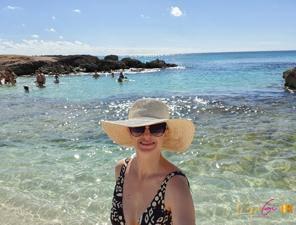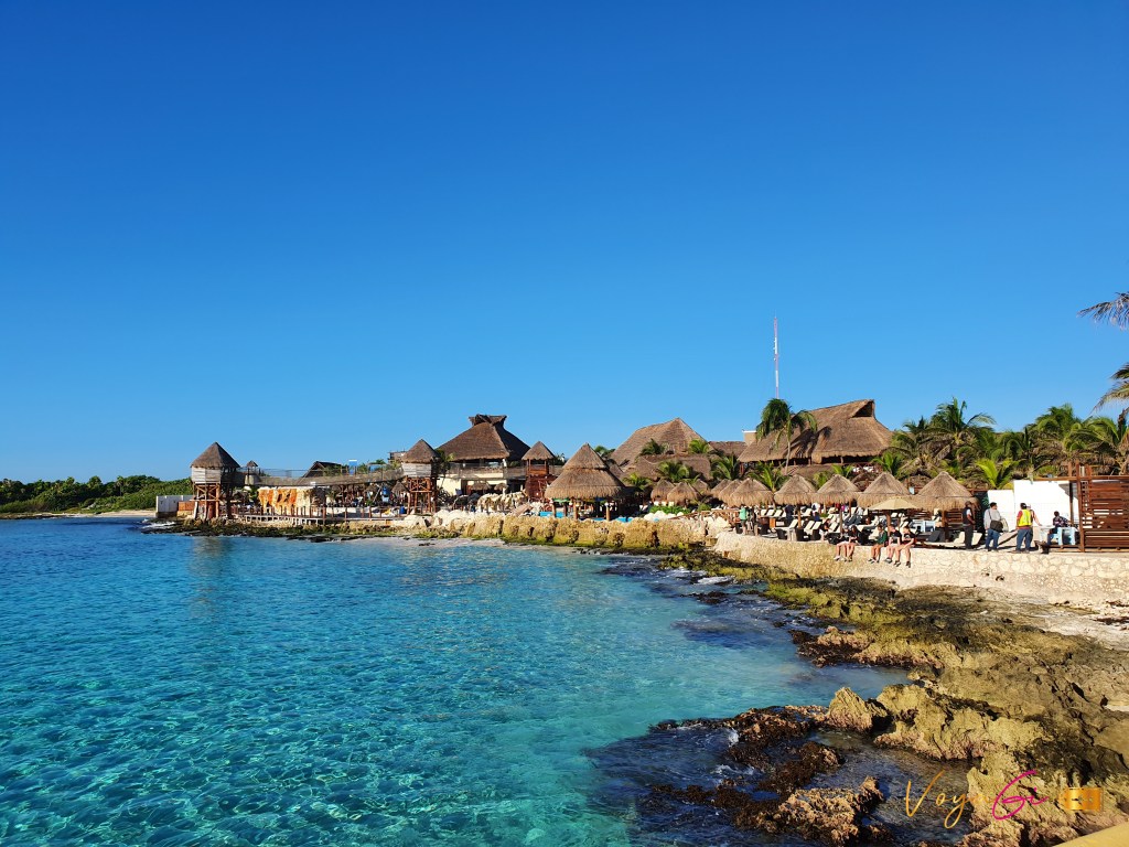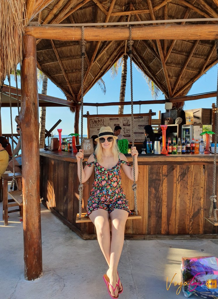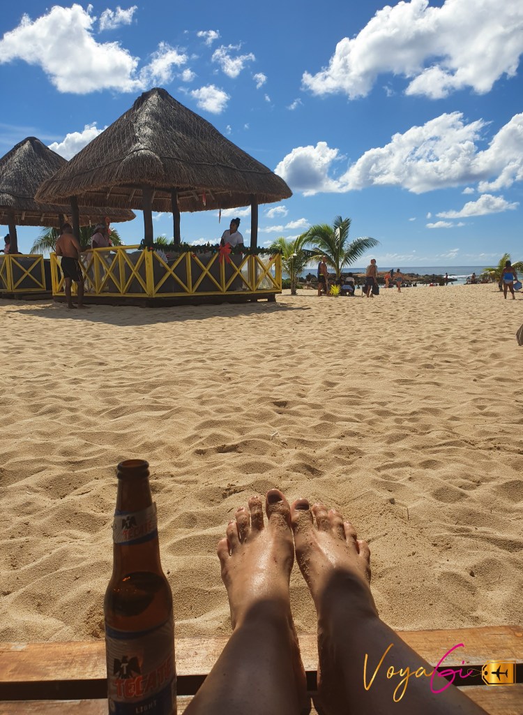 Dia 5 – Parada Cozumel, México. No dia de Natal, a parada era na famosa Cozumel. Descemos e nos deparamos com um controle rigoroso de segurança na entrada do porto, bem diferente das outras paradas que não tinham segurança alguma. Não pude entrar com uma maçã que tinha levado de lanche. A estrutura do porto era muito boa. Não era tão bonito como em Costa Maya, mas era com certeza maior. Tiramos fotos, passamos pelas lojinhas e seguimos para a praia. O plano desse dia era conhecer a praia Mia que, segundo papis soberano, era a melhor praia do local. Como ele já havia estado ali outras vezes, é claro que nos guiamos por suas palavras. Pegamos uma condução e fomos até a praia indicada. O contratempo aqui foi que novamente o tempo não estava muito a nosso favor. Havia muito vento nessa praia Mia e por esse motivo muitas algas sujavam a água. O pessoal foi justo em deixar um de nós ir até a praia para verificar a veracidade da informação. Seguimos então para a Punta Morena. As praias em Cozumel ficam um pouco mais afastados do que nas outras paradas. Demoramos uns 40 minutos para chegar. O mesmo esquema da outra praia mexicana: tinha um restaurante/bar com uma estrutura um pouquinho melhor do que Costa Maya. Mas o Wifi prometido na placa da entrada do local não funcionava de jeito nenhum (a não ser que você pagasse 5 dólares) e não tinha lugar nenhum para carregar o celular. A comida não tão boa e o serviço de garçons muito ruim. O mar do caribe não desapontou: águas verdinhas, transparentes, quentes. Novamente um incômodo na hora de pagar a conta: ser intimidado para pagar a tal propina por um serviço horrível. A praia era muito bonita, mas, passadas algumas horas, já estávamos querendo voltar para o navio e tivemos que esperar até a hora marcada com o motorista para ir embora. Ficamos procurando o motorista e o veículo para tentar ir embora antes, mas não encontramos mesmo no estacionamento. Tentamos contato através de outros motoristas que ali estavam, mas com “aquela boa vontade” de ajudar, ninguém sabia e nem conhecia ninguém. Nesse dia, também cometemos um erro básico. Quando contratamos o serviço de traslado até a praia, pagamos um parte do valor e marcamos uma hora para que o motorista retornasse para nos buscar. Me lembrei depois que já tinha lido em vários blogs que muitos motoristas davam o golpe e não voltavam para pegar os turistas. Bom, no final o motorista apareceu no horário e retornamos em segurança. Antes de passar pelo porto e sair da cidade, uma rápida passadinha de Hard Rock Café Cozumel minúsculo e mais caro que já entrei! Retornando ao Symphony, conseguimos ainda assistir a um lindo ocaso relaxando na jacuzzi. No jantar, decidimos conhecer um restaurante diferente e fomos até Solarium Bistro Restaurant. Tudo era servido em pequenas porções. Deu para provar bastantes coisas! P.S. Alguém lembra que eu falei no meu outro post (Miami) que ganhei uma saída de praia esvoaçante do meu papis? Sim, esse dia eu usei ela!