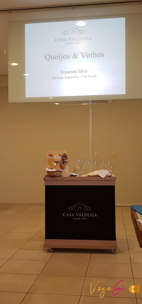 Passamos praticamente o dia todo no complexo Casa Valduga. Chegamos ainda pela manhã e ficamos perambulando pelo local. Estacionamos o carro dentro do complexo, fomos até a enoboutique e logo fizemos nossa inscrição, na área de cursos e eventos, para o curso de Queijos e Vinhos que seria à tarde. Eu já havia feito um pré-agendamento por e-mail. Já que estávamos por ali, decidimos conhecer a gastronomia do Restaurante Maria Valduga. O restaurante tem uma decoração lindíssima coberto em pedras de basalto e serve no estilo rodízio livre. Cardápio típico italiano: galeto ao primo canto, costela suína e, como especialidade, sequência de massas preparadas artesanalmente. As massas são fartas e saborosas. Vá preparado para comer! Saímos para dar uma caminhada, fazer a digestão e hora para o início do curso às 15h. Fomos recepcionados pela simpática enóloga que nos acompanhou por todo o Complexo Enoturístico Casa Valduga. Conhecemos a A Maior Cave de Espumantes da América Latina. No curso, a enóloga explanou sobre a história e os tipos de queijos e como conseguir fazer uma boa harmonização com os vinhos e espumantes. Foi uma deliciosa tarde. Superou todas as minhas expectativas. Degustamos e harmonizamos 6 rótulos da casa entre vinhos e espumantes. Se eu já gostava da Casa Valduga passei a admirar mais os produtos. Finalizamos a visitação na enoboutique que, além dos vinhos e espumantes, dispõe de cervejas, camisetas, cosméticos e acessórios para vinhos. É de enlouquecer qualquer visitante!