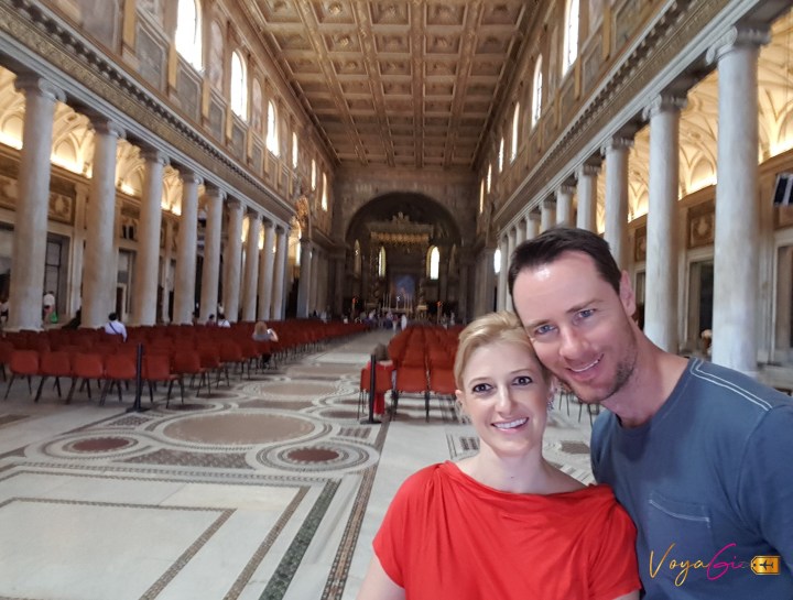 Dia 5 – Roma. Nosso último dia em Roma foi sem muito roteiro. Um dia para comprinhas, voltar em alguns lugares e se despedir da cidade eterna. Lembra o restaurante/padaria do dia anterior? Fomos tomar o café da manhã lá. E foi tão delicioso quanto jantar. Recomendo! Pegamos o tram até a Piazza della Repplubica. A praça é uma grande rotatória com uma enorme e bela fonte no centro. Está rodeado por lindos edifícios como as Termas de Diocleciano e a Basílica Santa Maria deglie Angeli. Almoçamos no Eataly que estava no caminho. para agradecer tudo de bom que estávamos vivendo em Roma, retornamos a igreja que casamos no primeiro dia, Basílica Papal Santa Maria Maggiore. Pude conhecer e ver e melhor os detalhes já que no dia do casamento eu só tinha olhos para o meu amor. A basílica é a maior das 26 igrejas de roma dedicadas à Virgem Maria. No seu interior conserva estilos diferentes do período do Renascimento e Barroco. Os mosaicos de idade Sistina que representam um ciclo de histórias do Velho Testamento é uma das singularidades da basílica assim como o altar por Ferdinando Fuga e a Relíquia do Santo Berço e o Batistério. Na basílica está enterrado o famoso escultor Gian Lorenzo Bernini. Vale muito a pena incluir a basílica no roteiro.