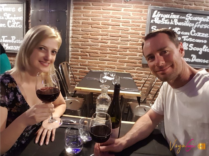 Dia 4 – Roma. Deu um pouco de preguiça junto com o cansaço e decidimos descansar pela manhã. O almoço foi no Hard Rock Café para comemorar o aniversário do meu marido. Satisfeitos e super felizes depois de provar alguns drinques seguimos para o bairro mais charmoso de Roma: Trastereve. Antes uma rápida paradinha na Ponte Fabrício para fazer um charme dizendo que a ponte tem o mesmo nome do marido! Trastevere é mesmo encantador. Dá para se perder nas ruas de tantas coisas bonitas e históricas. Os edifício e casas parece que se combinam entre si. Como num cenário de filme, tudo arrumadinho. Me deu a impressão que as pessoas são felizes ali. Um lugar para não levar mapa e celular. Só ir caminhando e apreciando a paisagem. O bairro ficou muito conhecido pelo agito noturno mas acredito que atualmente também tem agito diurno. São muitos restaurante, praças, igrejas históricas, gelaterias. São muitas opções para fazer durante o dia. Retornando ao centro histórico de Roma, fomos até a famosa escadaria da Piazza di Spagna, que para variar estava lotada. Ali na praça fica uma perfumaria italiana muito legal de conhecer, a Acqua Di Parma. Além dos aromas incríveis a perfumaria conta com uma barbearia muito VIP. Os preços não são muito atrativos, mas se você estiver passando, entre para conferir. Logo em frente tem uma lojinha só de luvas. Achei tão curioso, nunca tinha vista tantas luvas e tudo quanto é cor e gosto. Pertinho dali fica o Antico Caffe Greco. Outro lugar para se admirar com calma. Este café está aberto desde foi inaugurado em 1760 e muitas personalidades passaram por ali. Quando entramos no café já percebemos um ar de elegância no ambiente. São mais de 300 obras e recordações históricas em exibição. E a decoração tradicional com seus móveis do Século XIX nos remetem o interior dos castelos. Foi realmente um lugar fabuloso de se conhecer. A noite fomos jantar num restaurante/padaria que passávamos todos os dias em frente para pegar o tram. Pensem em uma comida boa! O restaurante Fatti di Farina era muito descolado, com uma decoração com acessórios de boxe. A tradicional pasta italiana e o vinho italiano encerraram nosso dia comemorativo com chave de ouro.