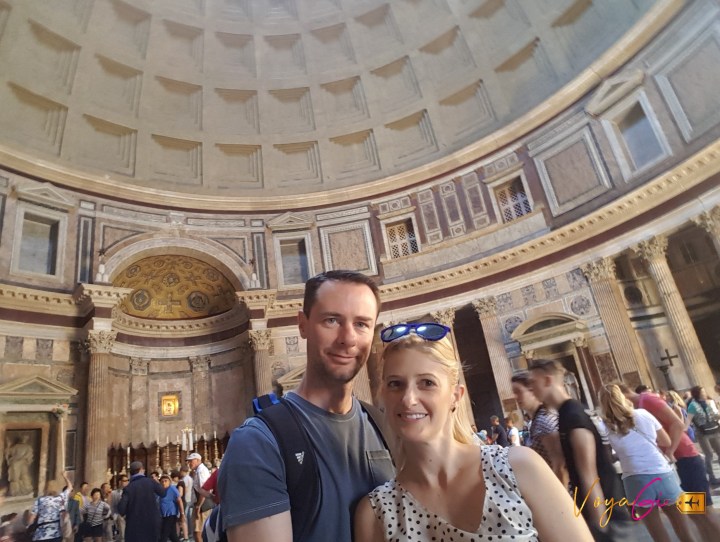 Dia 3 – Roma. Todos os dias para chegar até a estação central de trem, Termini, pegávamos um tram da linha Giardinetti– Roma. Contei isso para dizer que a condução era quase um bonde, super charmosa. Descemos próximo a Piazza Colonna e de longe já avistamos a Coluna de Marco Aurélio, homenagem feita após a sua morte para celebrar suas vitórias. Passamos em frente a Galleria Alberto Sordi, um prédio muito bonito por dentro e por fora. Se você estiver por ali não deixe de conferir seu belíssimo interior. Como eu não sou de ferro, precisei entrar na loja Zara para dar um olhada nas tendencias, né!hahah Conseguindo pelas belas ruas de roma, chegamos a Igreja Santa Maria Madalena. Sim, é a mesma que a história conta como reputação duvidosa. Outra vertente acredita que Maria Madalena foi esposa de Jesus. Isso rendeu livros e até um filme, O Código da Vinci, do escritor Dan Brown. Apesar da polêmica a igreja é muito bonita! Caminhar em Roma sempre é uma boa escolha, a cada esquina e praça você encontra lindos edifícios e muita historia. Continuando a caminhada chegamos ao Panteão, o edifício mais conservado da Roma antiga. É uma atração gratuita e sempre há longas filas. Seguindo a dica de um blog, fomos conhecer uma cervejaria. Sim, tem cerveja boa em Roma. Almoçamos na cervejaria Open Baladin. Um lugar moderno, muito agradável, com cerveja e comida boa. Depois de abastecidos fomos praticar uma atividade. #sqn A visita foi complexo ao Olímpico de Roma, Foro Italico. Infelizmente o estádio estava fechado naquele dia e não conseguimos chegar muito perto. É uma atração mais afastada do centro de Roma então separe umas horas a mais no seu roteiro. No final do dia fomos até o imponente Monumento a Vittorio Emanuelle II, o primeiro rei da Itália. A enorme escadaria toda em mármore branco e o terraço panorâmico são os principais atrativos. Uma das atrações que eu mais gostei de Roma.