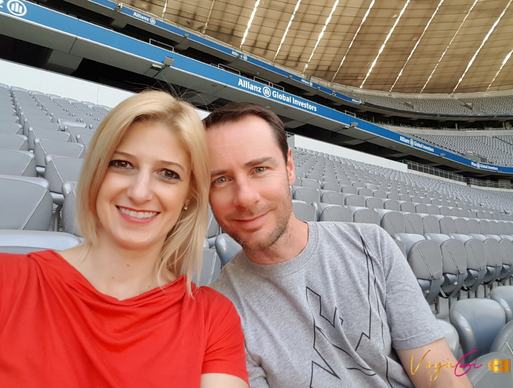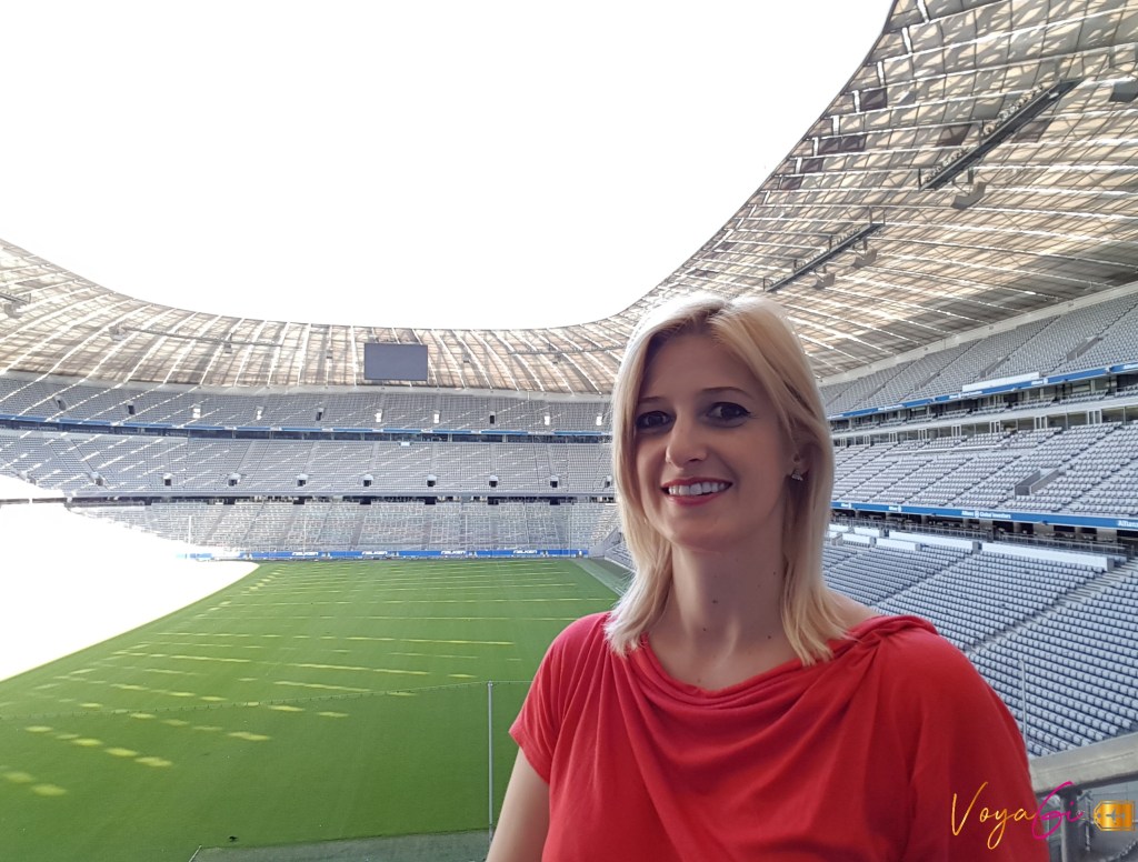 Dia 2 – Munique. Acordamos cedinho para pegar o trem para ir até a cidade de Dachau. O campo de concentração Dachau, fica a 19 km do centro de Munique, são 25 minutos de trem. Foi o primeiro campo de concentração na Alemanha da era Nazista e serviu como modelo para os seguintes. Hoje é um memorial e centro de pesquisas. Há um centro de atendimento ao visitante com informações, áudio guia em vários idiomas, livraria e uma pequena cafeteria. A entrada é gratuita e é possível reservar visitas guiadas se você preferir. A área onde está o campo de concentração é muito arborizada e bonita. Logo no portão de entrada encontramos o famosos slogan nazista na década de 30, Arbeit macht frei, o trabalho liberta. Passando pelo portão percorremos a área dos antigos alojamentos onde os prisioneiros dormiam, área dos crematórios e câmara de gás, bunkers e exposição de objetos e fotos das pessoas que foram aprisionadas aqui. Eu não sei o que vocês pensam sobre esse tipo de passeio mas eu sou o tipo de pessoa que gosta de ter a experiencia para poder fazer comentários. vale a pena? Bom, eu digo por mim, que 5 minutos dentro do local já foram suficientes para eu saber que não gosto desse tipo de programa. Apesar de todo valor histórico, rico em detalhes, de tudo que eu vi ali, não fui capaz de não me abalar emocionalmente. Saí triste. Na parte da tarde fomos a um tour muito mais animado. Saindo da estacão de trem já conseguimos avistar o imponente estádio Allianz Arena. A casa do mundialmente conhecido o FC Bayern de Munique. O estádio foi inaugurado em 2005 para a Copa do Mundo da Alemanha. Fizemos um tour muito legal pelas principais áreas do estádio. Visitamos os vestiários, arquibancadas superiores e inferiores, sala de entrevistas, sala de troféus e por último a cereja do bolo. entramos no túnel que leva os jogadores do vestiário até a entrada do campo ao som do hino da Champions League. (tem um vídeo mostrando como foi lá no meu Instagram) Eu nem sou muito fã de futebol mais achei emocionante. A visita continua pelo Museu do Bayern e se encerra na mega loja do clube. O tour foi feito em inglês.