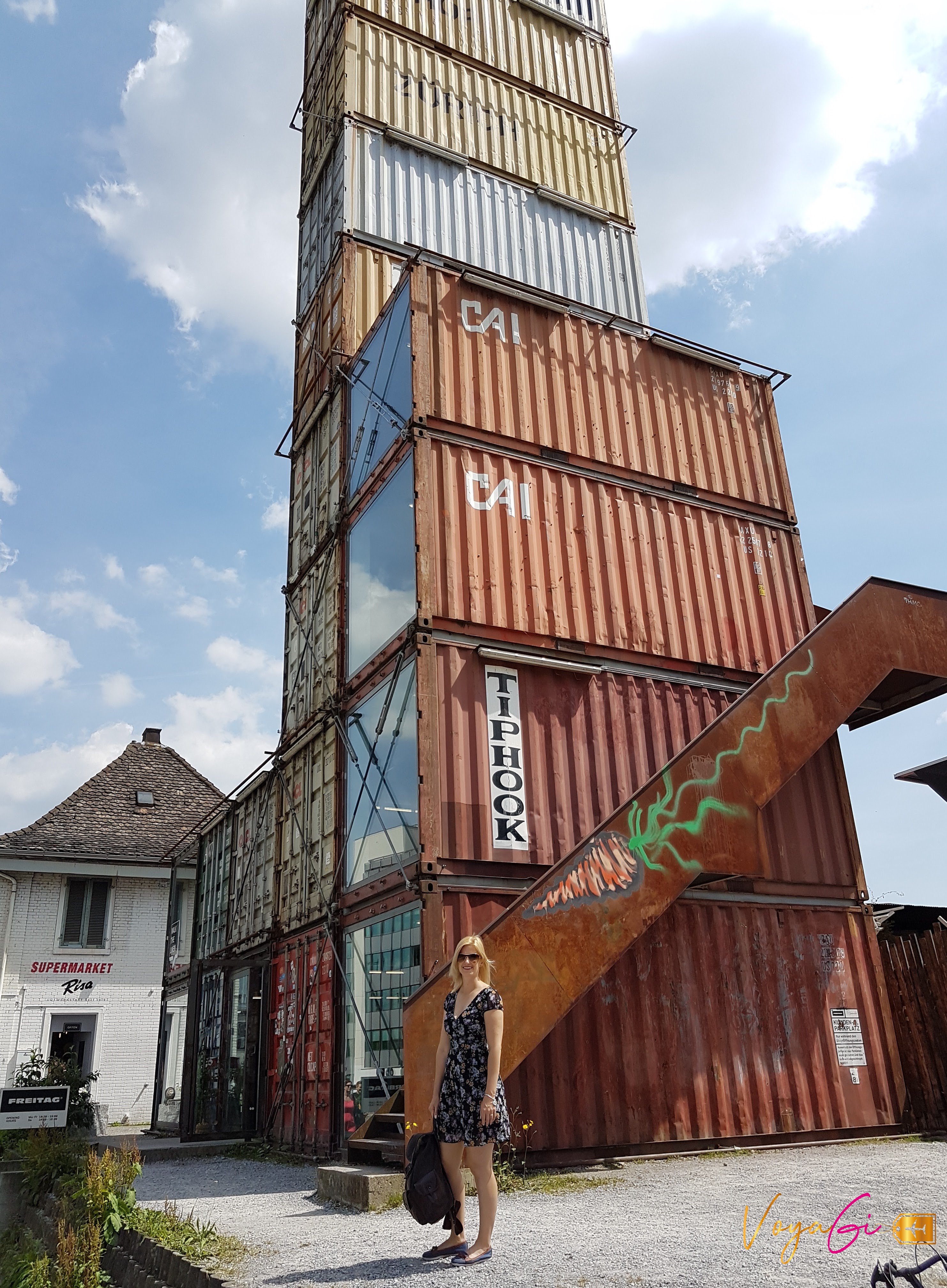 Freitag. Você sabia que pode ter uma bolsa super moderna, bonita e sustentável? Cade a novidade, Gi? Percebendo o desperdício do mercado da moda e a incapacidade de encontrar uma bolsa que atendesse as sua necessidades, os irmãos suíços Daniele e Markus criaram a Freitag. A inovação das bolsas veio do material principal. Elas são feitas com lonas de caminhão recicladas, câmaras de ar de bicicletas e cintos de segurança de carro. A loja, que fica em Zurique, é uma atração a parte. São 19 contêineres antigos empilhados repleto de bolsas, sacolas e carteiras. Dá para imaginar? Quando cheguei em frente a loja confesso que estranhei o visual mas a proposta é super interessante e tem caído no gosto dos europeus. Frequentemente vemos as bolsas desfilando pelas ruas da Europa. O preço que não é lá muito agradável. Se você quiser mesmo comprar uma bolsa pode começar a fazer sua economias. A loja fica coladinho ao Frau Gerolds Garten, então você pode conhecer 2 lugares diferentes de uma só vez. Apesar de ter gostado da visita não me animei a comprar. Não curti o design das bolsas.