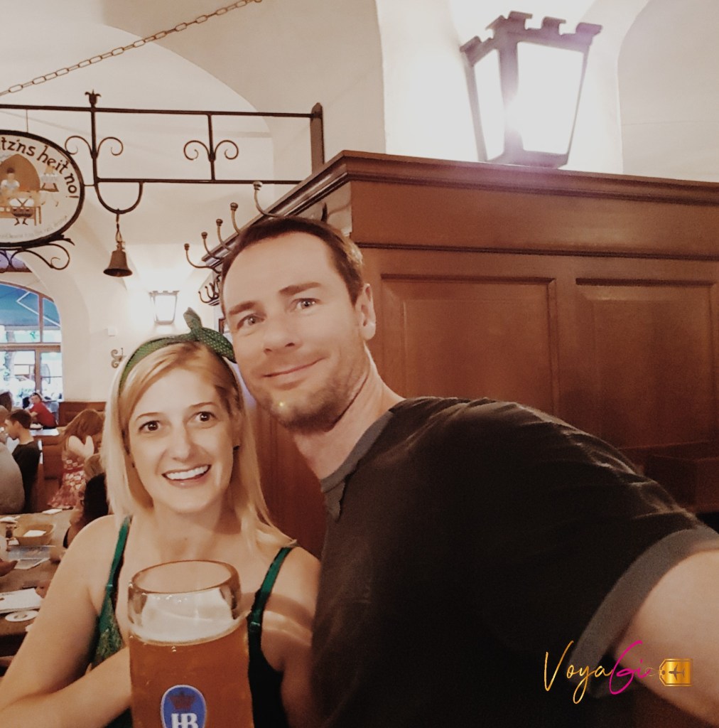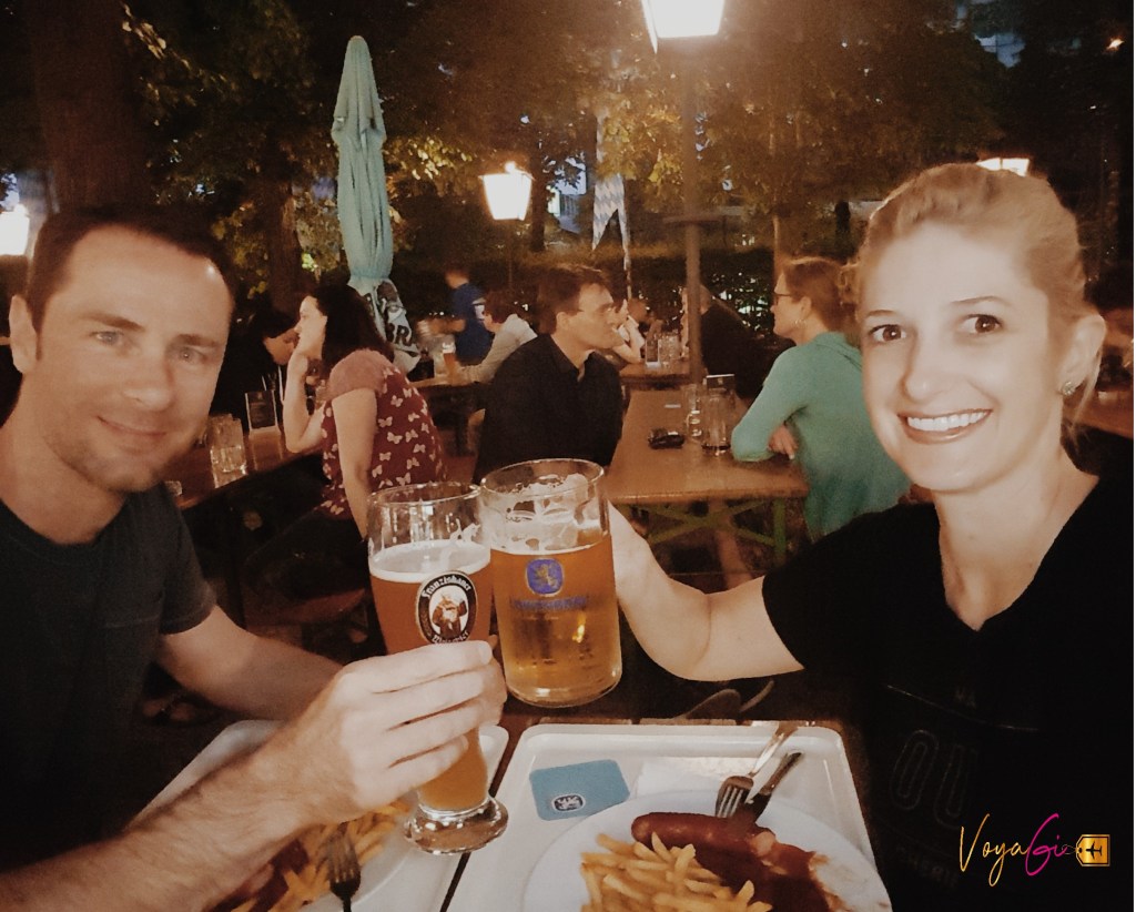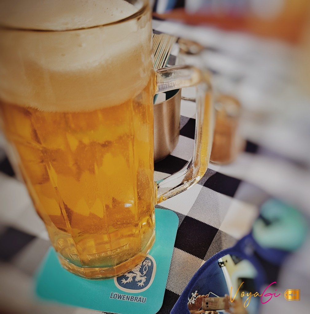Visitamos Munique no final de maio, inicio de junho de 2017. Os copos de cerveja geralmente são de 1 litro. Cerveja não é a minha “bebida oficial”, então normalmente eu e meu marido dividimos o copo. A cervejaria Hofbräuhaus é a mais turística, se você procura tranquilidade não vá lá.