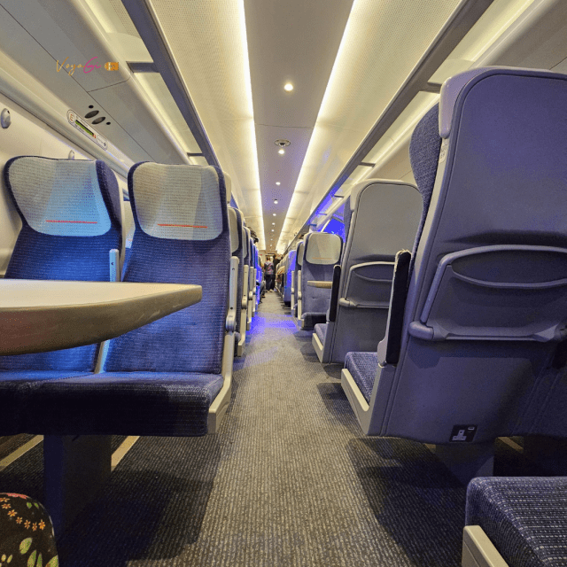 No trem de Edimburgo para Londres os assentos com mesas, que foram os escolhidos por mim, tinham carregadores por indução e por cabo. Adoro essa tecnologia toda! O trajeto foi feito em 6 horas, com algumas paradas e nenhuma troca, e deu para descansar.