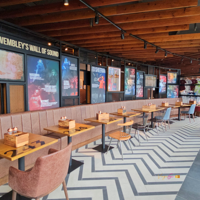 Saindo da estação Wembley Park a gente começa a caminhar por um lindo calçadão com vários cafés e restaurantes até chegar a entrada do estádio. Eu coloco essas atrações nos meus roteiros porque meu marido gosta de futebol, mas eu confesso que estou gostando de ir conhecer os estádios!