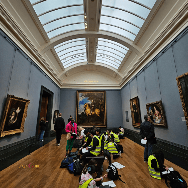 Segundo dia foi o dia do museu The Nacional Gallery. Passeio que eu chamo de “xuxu beleza”, pois é gratuito, estruturado, local fechado (bom para dias chuvosos) e podemos admirar obras extraordinárias como quadros de Rembrandt, Tiziano, Velázquez, Van Gogh e Michelangelo! É a galeria de arte mais importante de Londres. Além de todas as obras maravilhosas, o prédio também é lindíssimo.