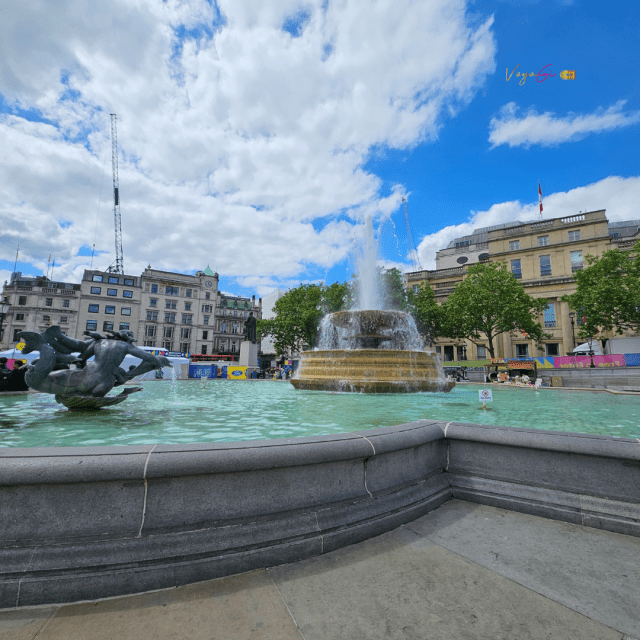Em frente a The Nacional Gallery está a Trafalgar Square que é uma praça muito bonita com uma enorme fonte.