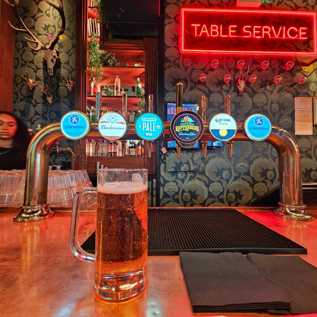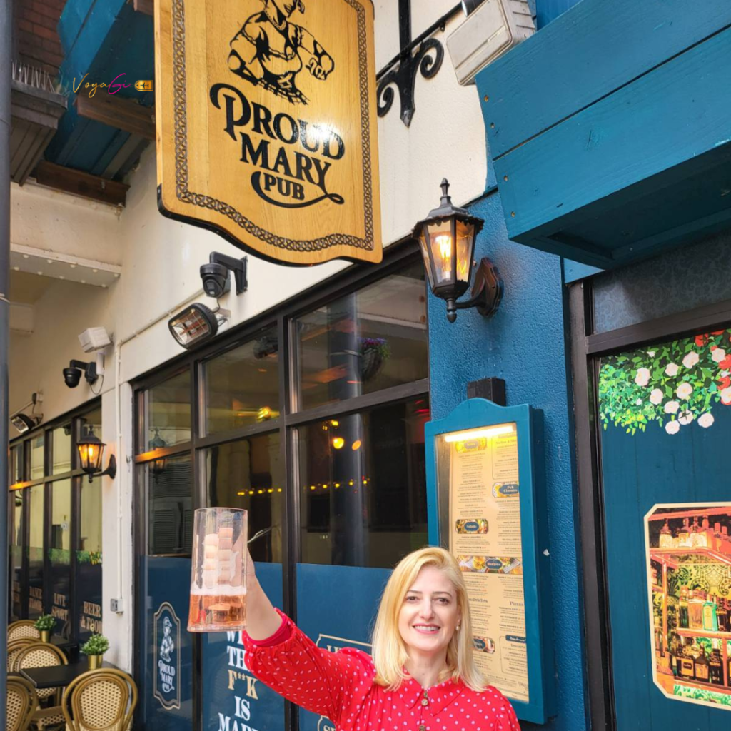Que cidade maravilhosa Cardiff! Tão maravilhosa que eles têm no centro da cidade uma esquina das cervejarias. Escolhemos a Proud Mary Pub que tem um ambiente moderno e descontraído, boas cervejas e uma máquina de fotos/vídeos super divertida.