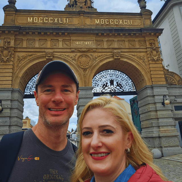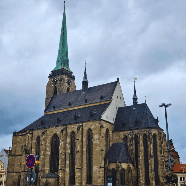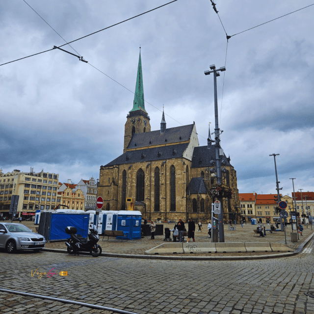 Seguindo em direção à cervejaria mais famosa da República Tcheca, chegamos à Praça Náměstí Republiky, onde se ergue a imponente Catedral de São Bartolomeu (Katedrála svatého Bartoloměje). Uma rápida parada para fotos, pois já tínhamos horário marcado para o almoço. O ar parecia carregar o perfume discreto do malte, como se a própria cidade respirasse cerveja. Caminhar até a Pilsner Urquell foi como atender a um chamado: seus portões imponentes nos convidavam a atravessar para dentro de um universo onde tradição e sabor se encontram.