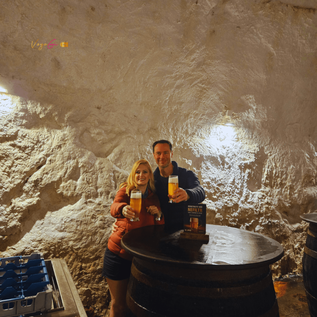 Munidos de nossas jaquetas, partimos para as caves subterrâneas da Pilsner Urquell, guardiãs silenciosas de um segredo dourado. Em seu interior, o frio constante envolve paredes de pedra úmida, criando um ambiente onde o tempo parece se mover mais devagar. Ali, em baixas temperaturas, a cerveja descansa pacientemente, amadurecendo até alcançar o equilíbrio perfeito entre frescor e sabor.