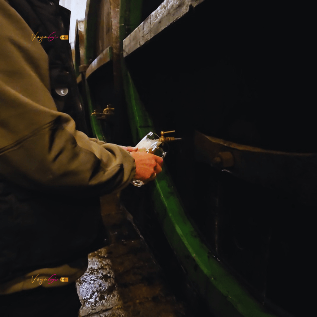 Caminhar por esses corredores é sentir a respiração da história: o aroma do malte impregnado no ar, o som discreto da água que escorre pelas paredes e a penumbra que transforma cada passo em reverência. É como se cada barril fosse um relicário, guardando não apenas a bebida, mas também séculos de tradição e dedicação.